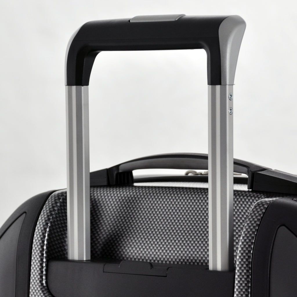 Le Poignée Télescopique en tant que pièce de rechange se compose de la poignée de traction sur le dessus, des deux tubes et du support qui connecte la poignée à la coque.