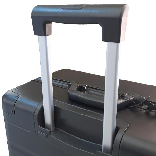 Le Poignée Télescopique en tant que pièce de rechange se compose de la poignée de traction sur le dessus, des deux tubes et du support qui connecte la poignée à la coque.